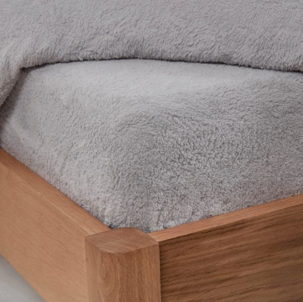 Teddy hoeslaken 2 persoons in een lichte kleur grijs, gemaakt van zachte, dikke teddy stof. Voor stijlvolle bescherming van het matras en behaaglijk ligcomfort! Dit 2 persoons hoeslaken is in 4 verschillende maten beschikbaar voor een perfecte pasvorm om je matras. Meet voor de juiste maat de breedte van je matras op. Combineer je grijze teddy hoeslaken met onze teddy dekbedovertrekken en kussenslopen voor een megazacht en heerlijk warm bed!